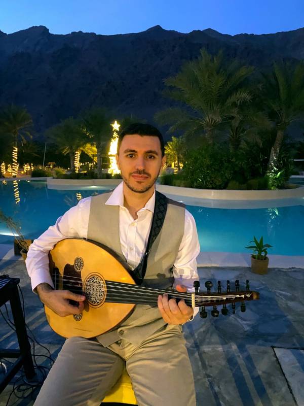 Adel is a professional oud player raised in a family of artists, where he developed a profound connection to music. Renowned for his skill and passion, he has performed on celebrated stages like the Carthage Theater in Tunisia and the Royal Opera House in Oman. Recently, he captivated audiences at the Ras Al Khaimah Fine Arts Festival. Alongside these major events, Adel has brought his soulful performances to private gatherings and elegant venues, including high-end hotels and fine dining restaurants, enchanting listeners with every note.
