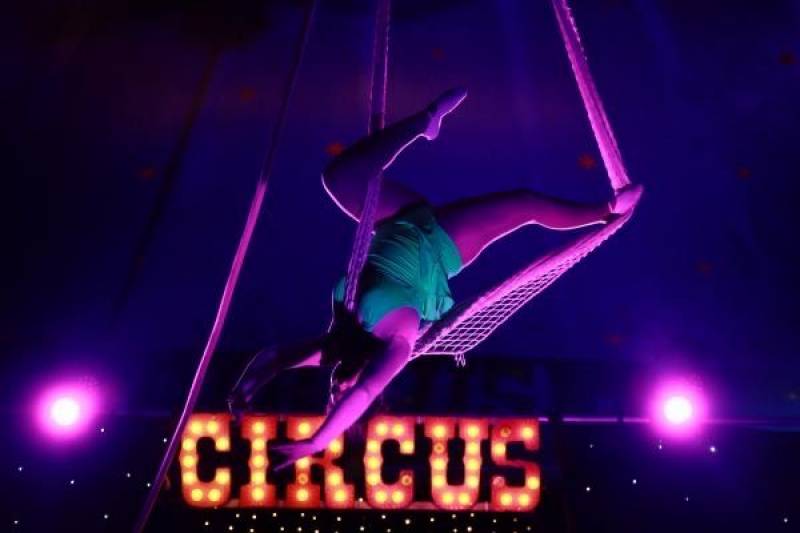 On the aerial silks you can witness Miss Edith's perfect body control.