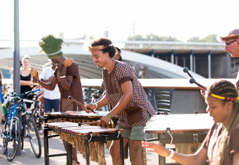 We are a colourful London based marimba band playing energetic, joyful music from Botswana, South Africa and Zimbabwe, including folk songs, original songs and popular southern African covers. The band's set-up includes soprano, tenor and baritone marimbas, drumming, percussion and singing, with both traditional and contemporary dances. The marimba band’s sound is full of energy and pulsating rhythms - and the band’s music shares the rich cultures, histories and stories of the people of southern Africa.