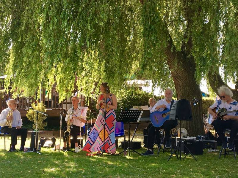 The instrumentalists are very experienced musicians and the line up is usually trumpet, clarinet/tenor sax, string bass, guitar/banjo and, of course, Helen on vocals. We come from Deeping, Crowland, Huntingdon and Lincoln.
