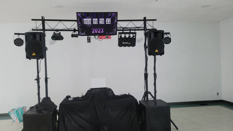 We provide a full sound system, light show (pending space required at venue), twin 46" video display and wireless microphone for your use at every event.