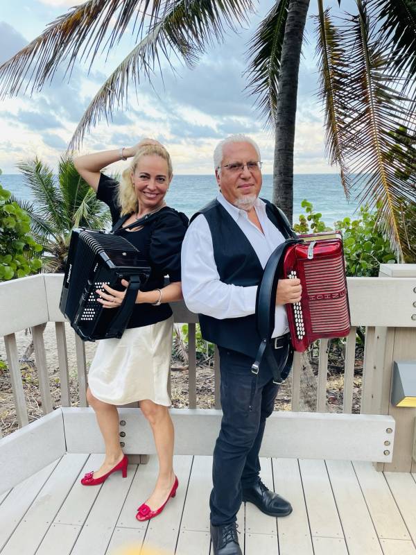 Peter and Tatiana are professional entertainers, virtuoso accordionists available for your Weddings, Anniversaries, Bar and Bat Mitzvahs, Birthdays and all Celebrations, Festivals and Concerts! From Solo to five piece band! We have performed all over the world! We have been performing for PBS South Florida, American German Club in Lantana, Little Italy festival in Port St. Lucie and many more! We will be performing your favorites: Latin, Italian, French, German, Irish, Ukrainian, Greek, Gypsy, Klezmer, Jewish, Polka, Tango, Waltz, Rumba, Oktoberfest, Hanukkah and Christmas music, American, European and much more! From solo to 6 piece band!