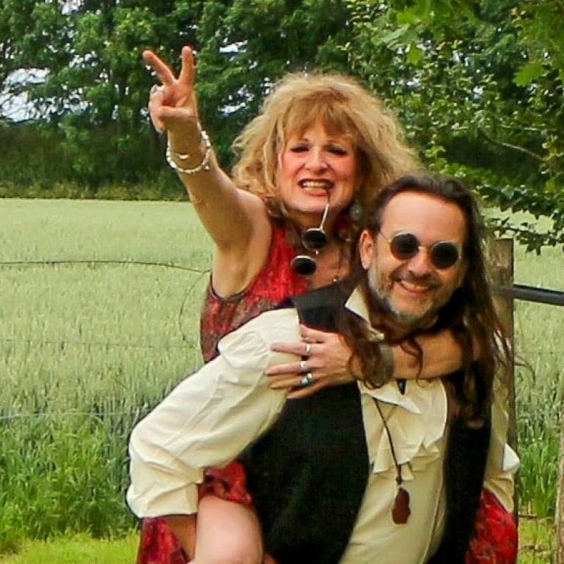 We travel with our flowerpower painted caravan everywhere people would like us to play.