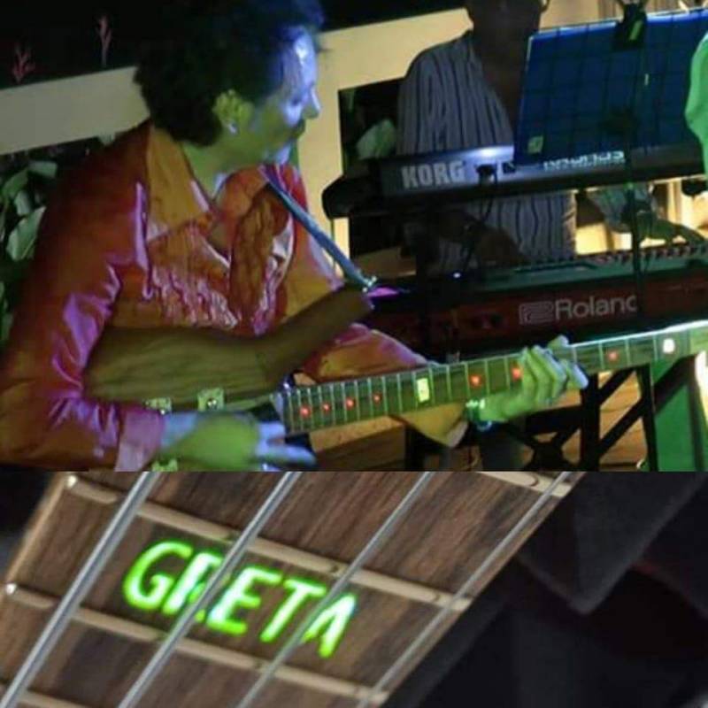 My band composed by: 1drummer, 1guitarist/singer, 1keyboardist, 2woman singer/background vocals, 1male violinist/singer.