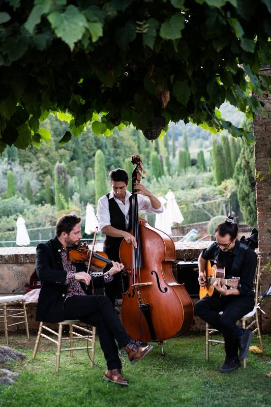 Towards the end of the night, The Italy Gypsy Band can bring the swinging and engaging rhythms of the double bass, guitar and violin for a more uptempo atmosphere!