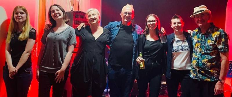 Female trio front line vocals. Male Guitarist, Female pianist, Male bass player, Female drummer.