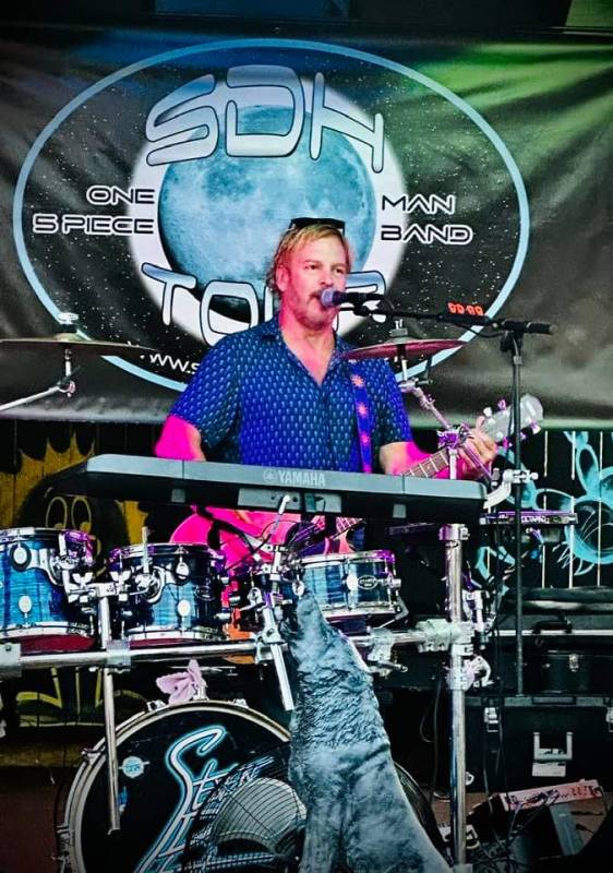 Loop artist playing five instruments and combining them together with looping technology to sound like a band no pre-recorded tracks it's all done LIVE.