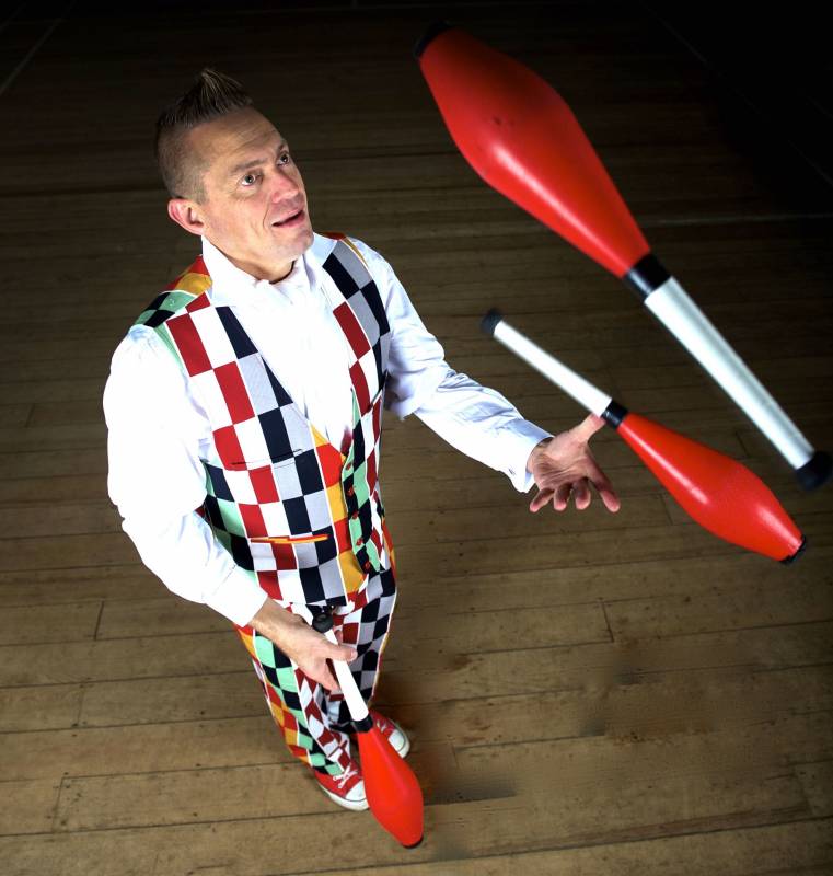 Circus Shows that can be tailored for all ages. He can adapt my workshops for any audience, all adults, all children, or a mix.
