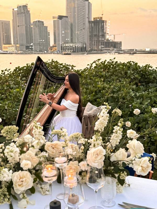 I've worked in 5-stars hotels as in Dubai as in Abu Dhabi. The best hotel where I've performed is in Address Sky View as a lobby harpist. Also I've performed in corporative events with Binghatti and Sobha.