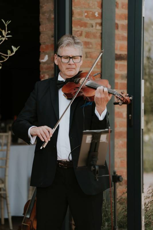 I absolutely love performing outdoors; I’ve played everywhere from orchard receptions to garden parties. To protect the violin and electrical equipment, I simply require a flat, stable surface and adequate shade (such as an awning, gazebo, or large parasol) to prevent heat damage. As delicate instruments and electronics cannot be exposed to rain, I always recommend having a 'Plan B' indoor space or cover ready so we can move the performance immediately if the British weather changes!