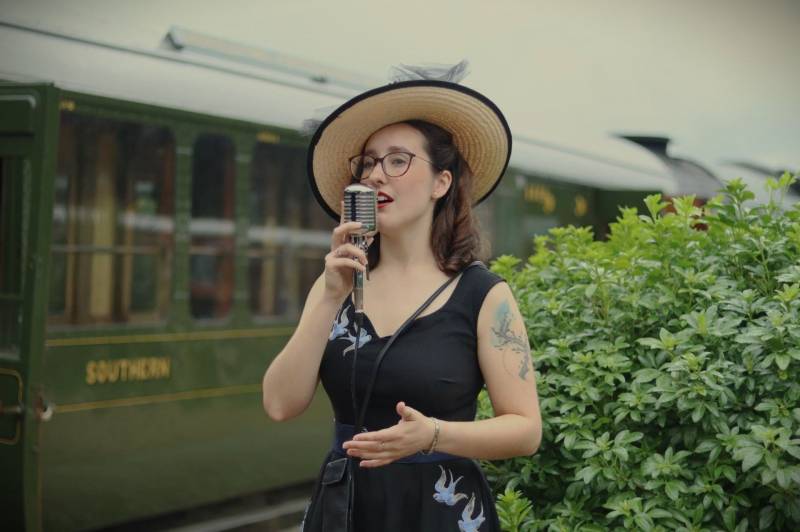 Since then, Keziah has brought her vintage styling to stages across Sussex, including standout performances at the Southern at War weekend at the Bluebell Railway, CollyFest 2025 at The Colonnade Bar, and the All Day Music Festival at The Park Crescent. Her repertoire spans timeless jazz standards and romantic ballads, with songs like As Time Goes By, Fly Me to the Moon, Cry Me a River, and L-O-V-E .