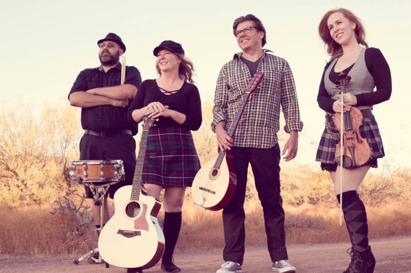 From lively toe-tappin' Irish and Scottish jigs & reels, to drinking songs and popular covers- Kilted Spirit is a Phoenix Irish band guaranteed to bring on the CRAIC! Their eclectic mix of instruments and boundless enthusiasm bring fun and excitement to every show. Led by multi-instrumentalist and vocalist Colleen Collins, the band consists of guitar, bass, fiddle, drums, Irish flute, tin whistle, Irish bouzouki, and vocals.
