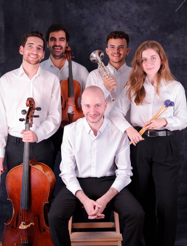 The members of the band are: Pedro Marques, violetist and violinist; José Pereira, cellist; Gaspar Macedo, pianist; Andrea Agra, percussionist; and Diogo Costa, trumpetist and trombonist. They all have experience all over the world playing in competitions, orchestras and solo.