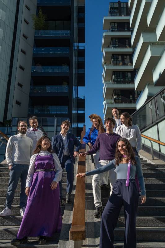 We are a musical collective of 9 people: a choir of 6 voices and a band of 3 elements formed by drums, keyboard and bass.