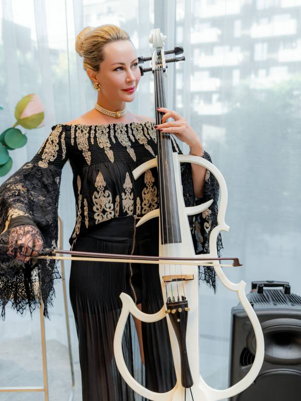 Modern electric cello performance,with different images and background music