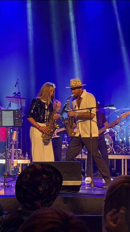 September 22, 2024: On stage at the Théâtre Femina (1,200 people!!): as Jimmy Sax’s special “guest” (Improvizing Ibiza-style party saxophone)