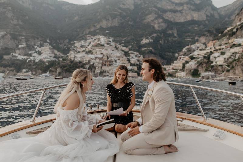 I loved officiating Jackie and Braxton's wedding on a boat off the coast of Positano, on the Amalfi Coast. A unique and romantic experience!