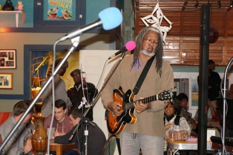 I play jazzy guitar and sing some songs. Sometimes I perform with my companion who plays sax to instrumental accompaniment. We play songs from Earth, Wind and Fire, Beatles and other groups that you're familiar with.