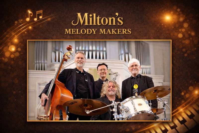A fourpiece jazzband that will make you happy. Sax, piano, bass and drums