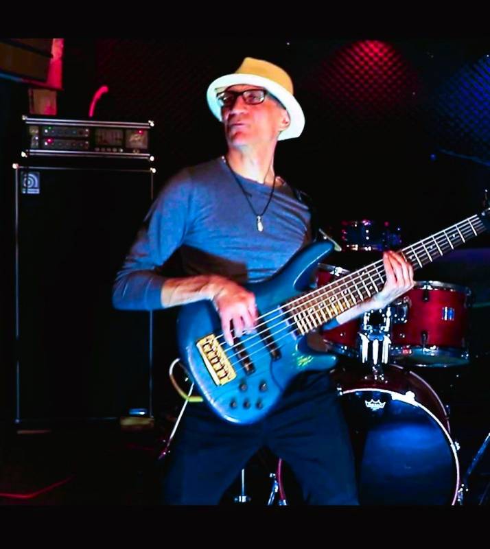Nabs D performs solo on stage playing 6 string bass with his original backing tracks mixed and mastered at his studio.