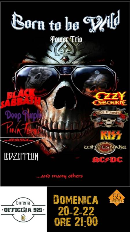 BORN TO BE WILD , Is a Classic Rock Trio (composed by a Tom Godzilla (Drums), Paolo Izzi (Guitars and Vocals) and Angelo D'Amata (Bass Guitar and Vocals). they performe an entirely live Rock Show, playing the most famous hits from bands as Deep Purple, Black Sabbath, Ozzy Osbourne, Guns and Roses, Pink Floyd, led Zeppelin, the knack, Status Quo, Whitesnake, Kiss, Scorpions, Iron Maiden, Beatles, Gary Moore and many more.