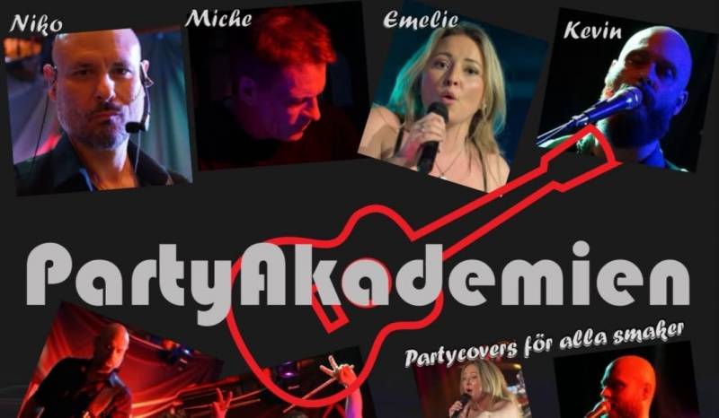Party Akademien is a cover band that plays a wide selection of popular songs, in the original arrangement with an acoustic arrangement, i.e. without “hard rock guitars”. In addition, we use digital drums which has made us very sought after as we can keep the volume down if desired.