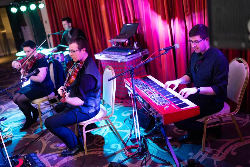 Reel of Fortune are a three piece ceilidh band from the north-east of Scotland consisting of fiddle, piano and drum kit. Since 2012, we have performed at over 200 functions, consisting of weddings, corporate events, student events and charity fundraisers. We provide traditional music and instrumental covers for ceilidh dancing to, meaning you could find yourself Stripping the Willow to some Queen, ABBA or Michael Jackson. We also offer a complimentary disco service so that you receive the full package, all from one supplier and offer to call all of the dances.