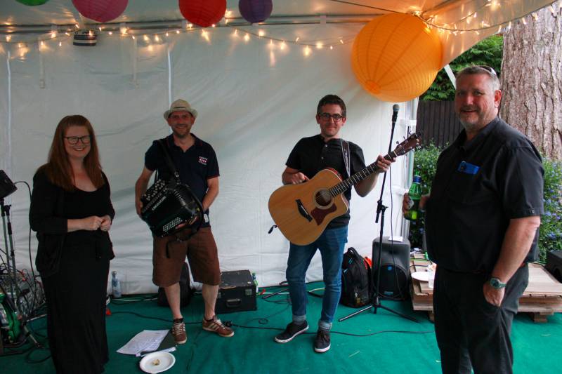Our main line-up is Danny on Accordion, Brendan on Guitar, Phil on drums & generally Tom calling. There is the option to book us as a three piece without Drums or a 5 piece to include fiddle.