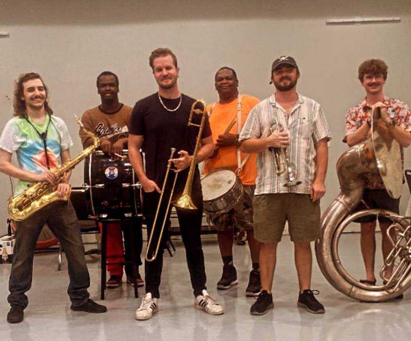 We are the Soul Seduction Brass Band professional musicians with a New Orleans-inspired brass band. We play funk, soul, R&B and our own original songs. Band line-up: sousaphone, trumpet, trombone,