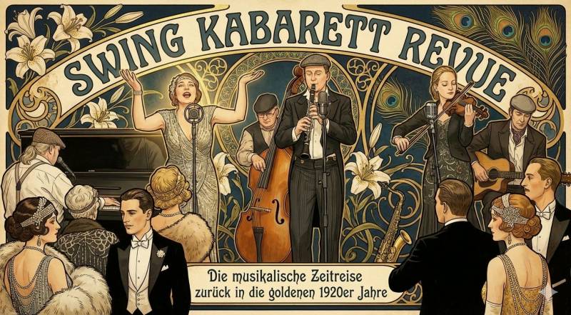 Swing Kabarett Revue - Die Zeitreise zurück in die goldenen 1920er Jahre! Erleben Sie legendäre deutsche Swing Schlager aus der "guten alten Zeit", live vorgetragen - frisch - fröhlich - beschwingt - nostalgisch - frech - frivol - anzüglich - aber stets niveauvoll und authentisch interpretiert. 100% Livemusik!