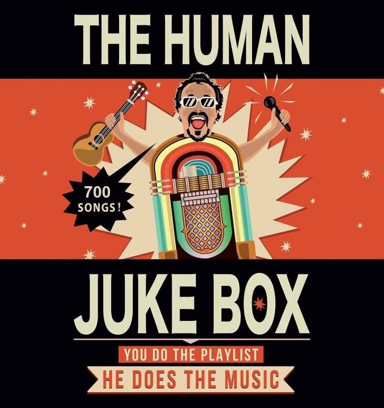 The Human Jukebox is an innovative and interactive live music system, in which a singer-guitarist perform covers, chosen by the audience in real time, from a list of over 700 songs, with various styles : pop, rock, folk, blues, reggae, metal, funk, hiphop…
