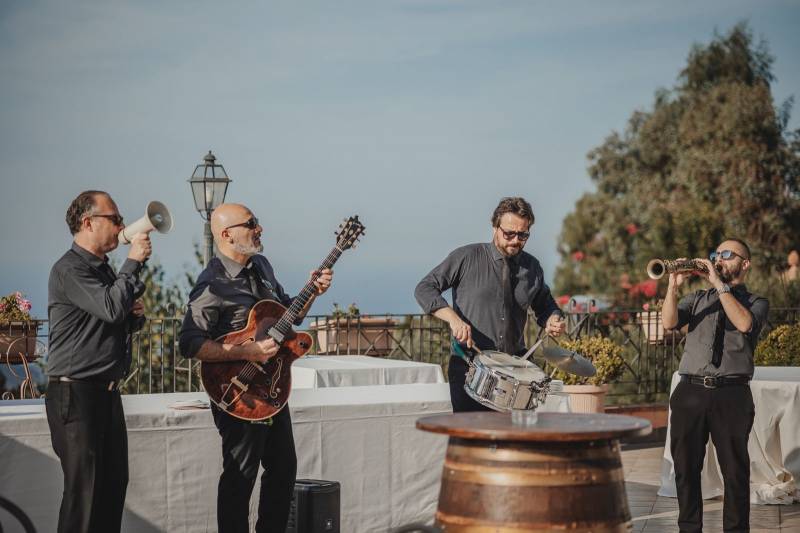During the strolling performance, the musicians will move around your guests (ideal for a welcome drink), after dinner (or also during dinner), the show will be more energetic with upbeat songs.