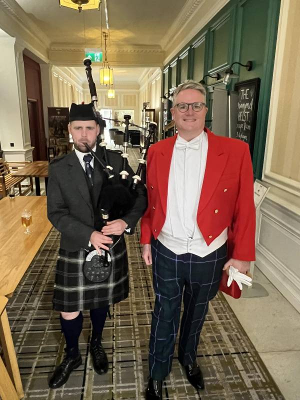 Richie, the Gavel Guy, has been speaking at dinners for over 30 years. His wit and charm have been appreciated by audiences as far afield as Australia, the United States and, of course Scotland. As all good Toastmasters should, Richie will attend your event dressed in red evening tailcoat, white bow tie and gloves. Richie likes to wear tartan trews to give a Scottish feel to his presentation, although if you’d prefer him in traditional black trousers, you need only ask and he’ll dress to your preference. As a Toastmaster, Richie is ideally suited to make sure your Big Day goes fantastically well.