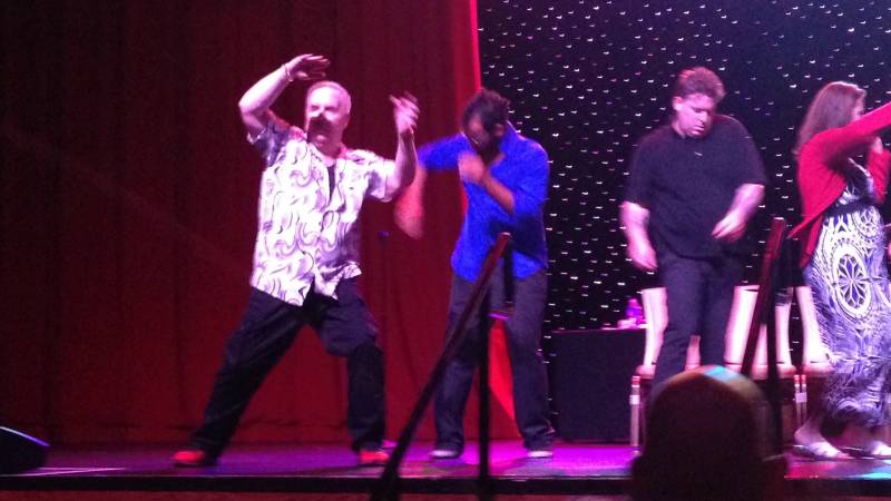 2. John’s music is on an MP3 player on his Samsung Galaxy Note smart-phone or Tablet Computer, patched in with 2 RCA Jacks. He will need to have a sound system with MP3 plug in patched in with 2 RCA Jacks or CD capability and a sound system operator (D.J.) to take music ques provided based upon routines on a provided list. Please make sure this is possible. Not all routines have music, but some do, especially later on in the show.