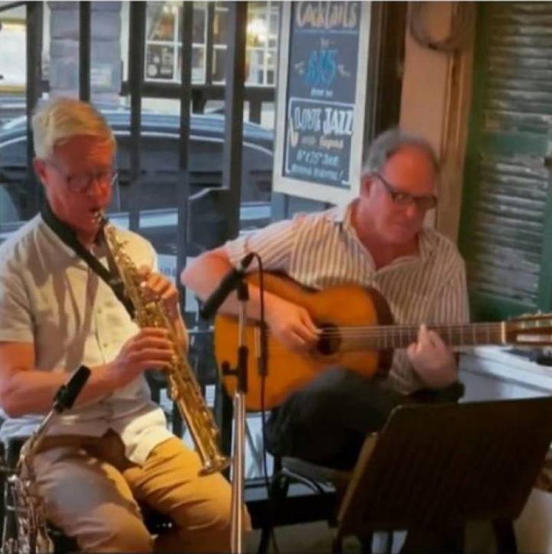 Two Blue Jazz are a Wirral Merseyside based duo playing Jazz standards and a varied program of instrumental music including pop artists like Sting ,Stevie Wonder, Bacharach. We provide background music for restaurants, weddings, functions, birthdays, tea dances, receptions etc. The duo comprises a jazz/classical guitarist and a woodwind player who plays alto and soprano saxophone, clarinet and flute.