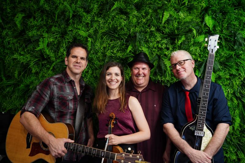 For those seeking a totally unique and memorable musical experience to celebrate their wedding, look no further. The Wood Vibrations are an acoustic-based band that covers songs from artists like The Beatles, Whitney Houston, Rihanna, Dave Matthews, Lady Gaga, Paul Simon, and Taylor Swift and can quickly go from atmospheric background music to floor-stomping dance anthems. The band consists of acoustic guitar, violin, bass, and drums, and all four musicians are singers. Our instrumentation allows for plenty of control over our volume and with our modest size, The Wood Vibrations can fit into any situation. Every booking includes personalized planning sessions, MC services, insurance, song requests, sound systems for all parts of your event, music during breaks, wireless mic for officiant/speeches, and band lighting. We also offer ceremony music, cocktail hour music and DJ devices. Our lineup can be expanded to fit your needs with extra singers and musicians upon request.