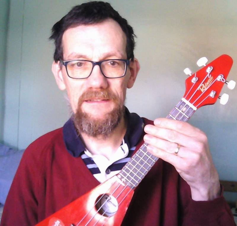 My main uke is a small (soprano size) one. I also use a small banjolele, and ukes from tiny to tenor sizes, and even sometimes a tenor banjo.