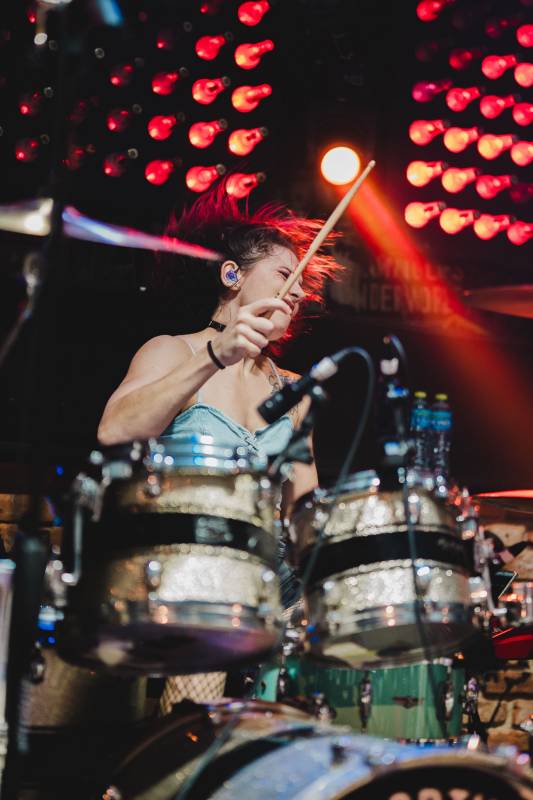 I play with backing tracks. Drum cover show.